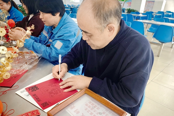 非遺剪紙靜中有動,職工們專注于手中的紅紙與剪刀,隨著紙屑翩然落下,“福”字圓滿,“馬”到成功,“柿柿如意”栩栩如生。一幅幅充滿節日氣息的剪紙作品,在光影映襯下展現出獨特的鏤空藝術之美,將新年的喜悅與期盼刻畫得淋漓盡致。