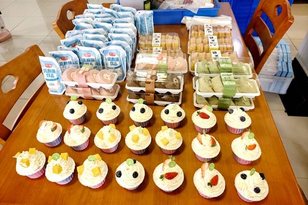 制作間隙,孩子們興奮地品嘗著準備的小點心,紙杯蛋糕、餅干、瑞士卷、酸奶等琳瑯滿目,歡聲笑語中更添一份童趣與滿足。